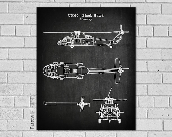 Army Helicopter Blue Print Uh 60 Blackhawk Black Hawk Etsy